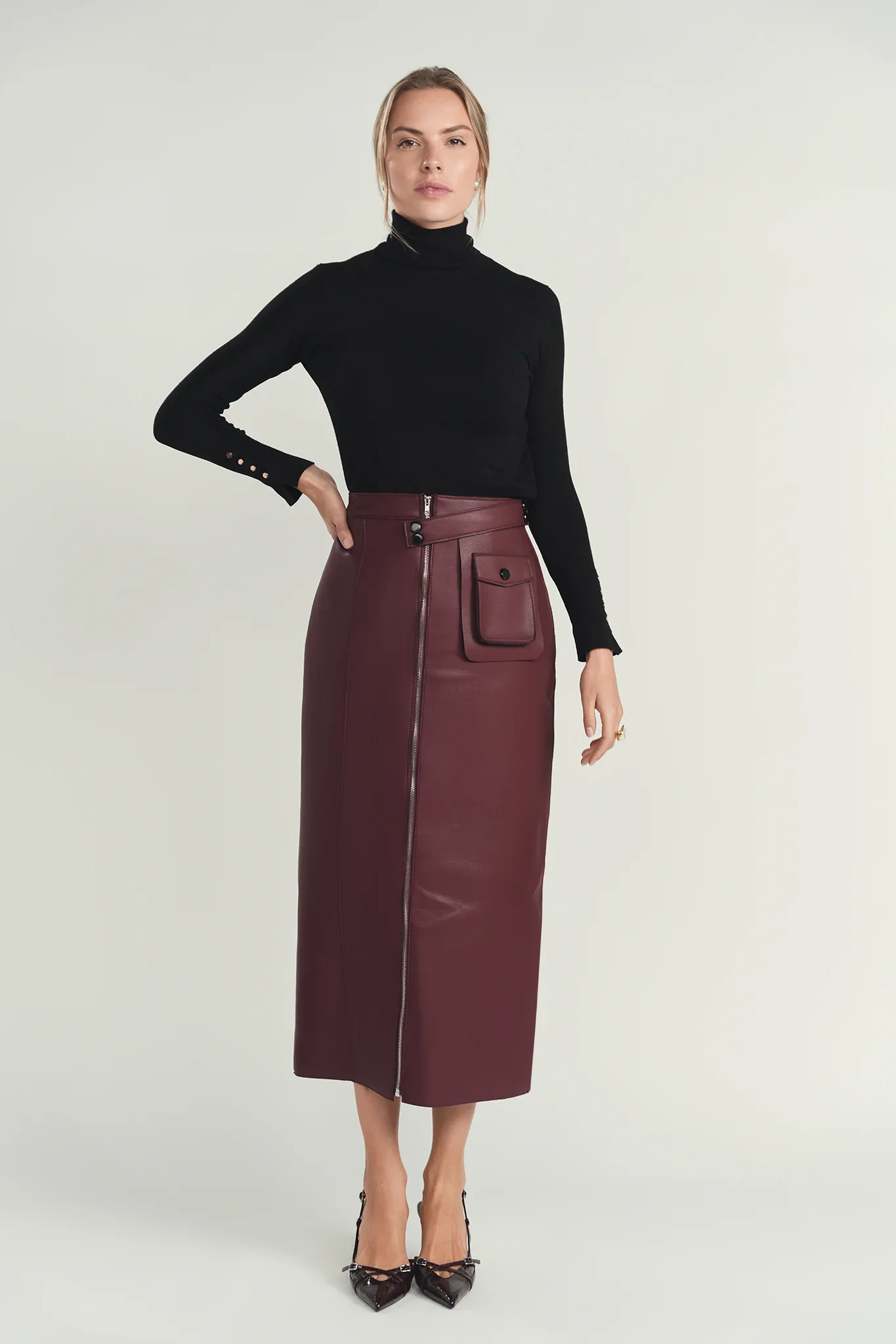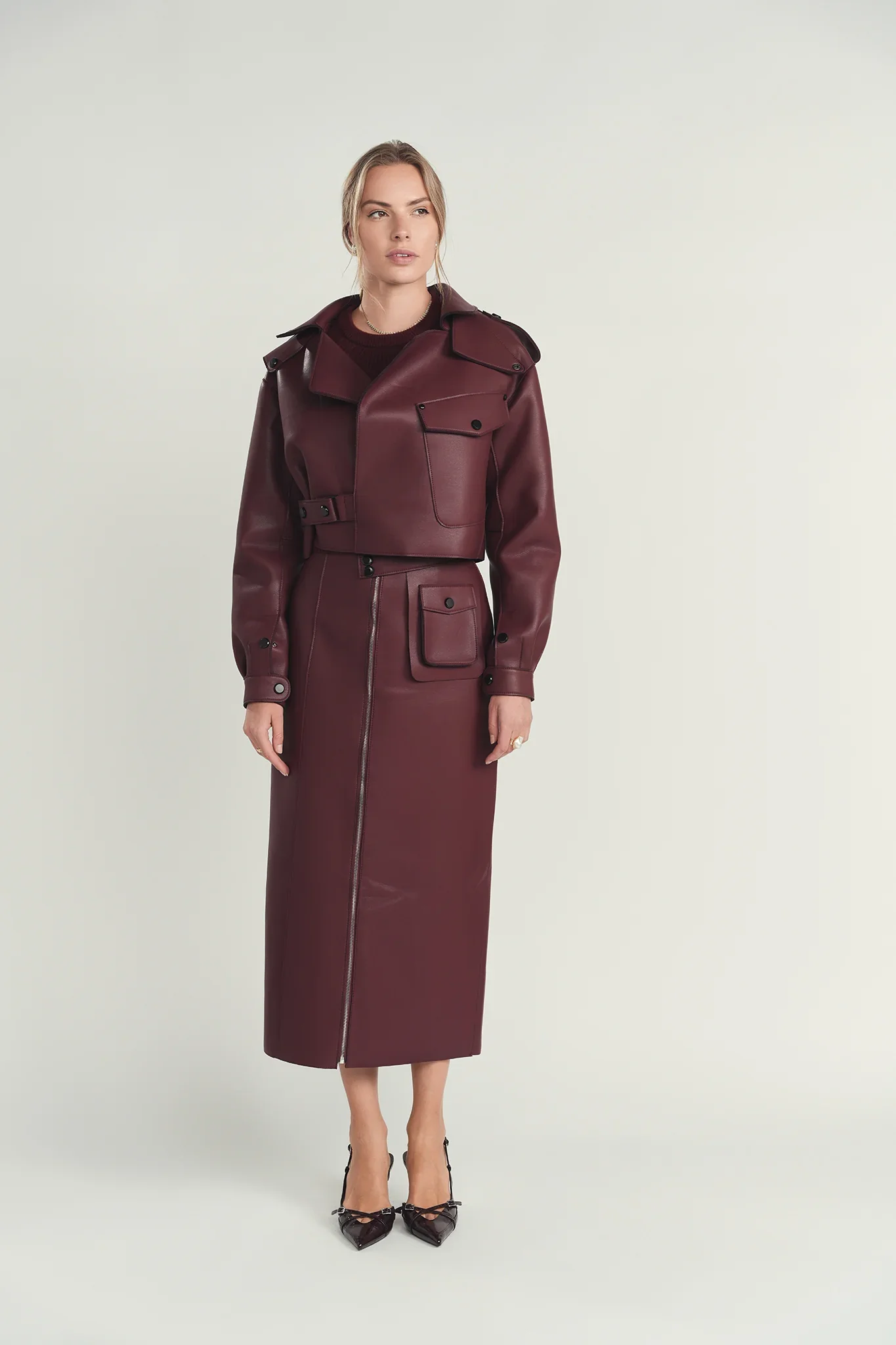 Maroon Structured Leather Skirt